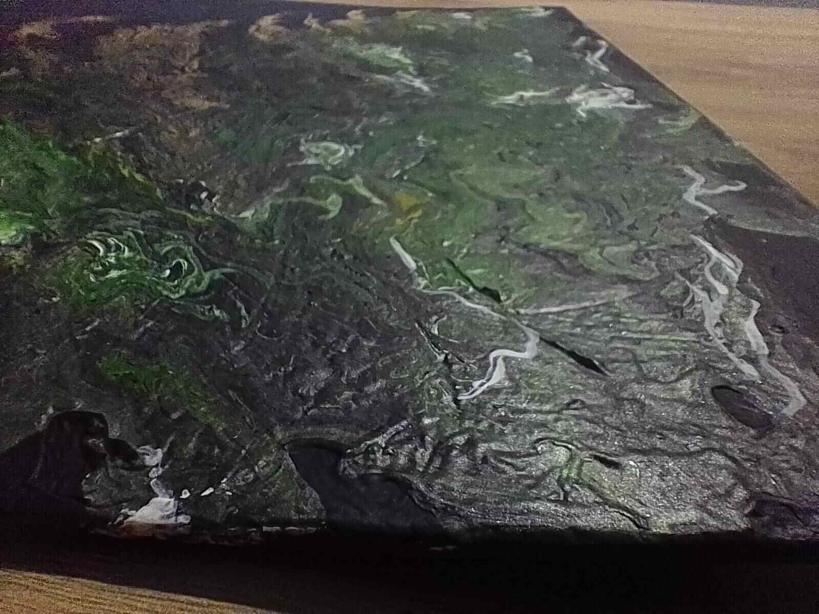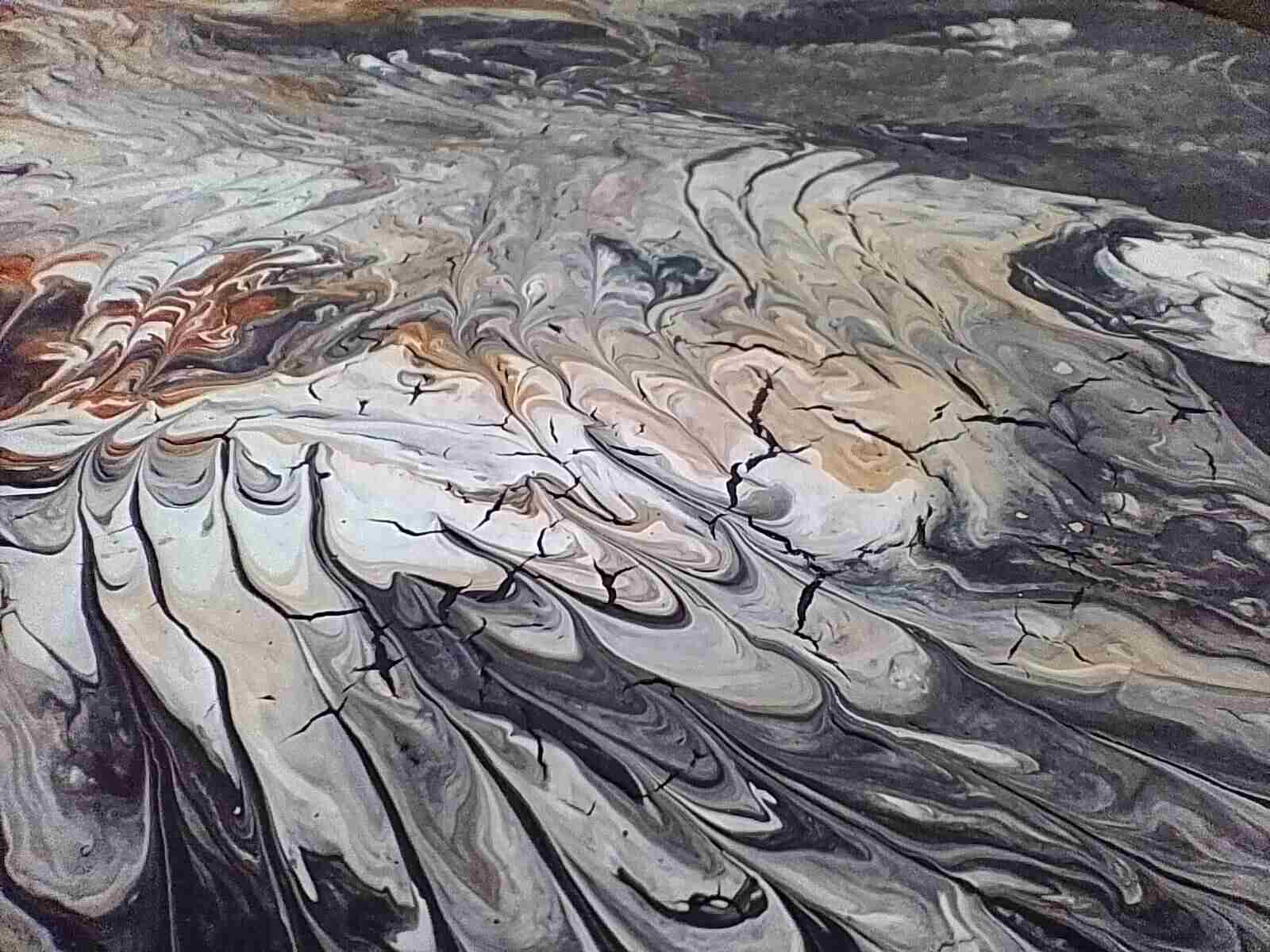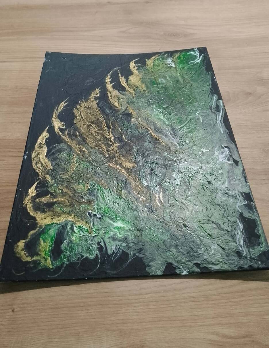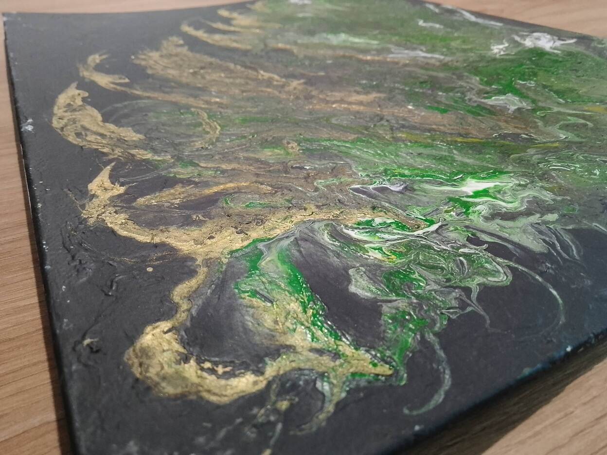 Obrazy wykonane metodą POURINGU są bardziej sztywne (duża ilość farby zużyta do ich wykonania), miejscami strukturalne (widoczne rzeźby, rysy, pęknięcia), podłoże jest nieco wygięte i poplamione farbą od spodu, ale po włożeniu do ramy się naprostuje, a tył nie będzie widoczny. Wszystkie cechy czynią te obrazy bardziej oryginalnymi, niepowtarzalnymi i pozytywnie podkręcają efekt wizualny dekoracji.