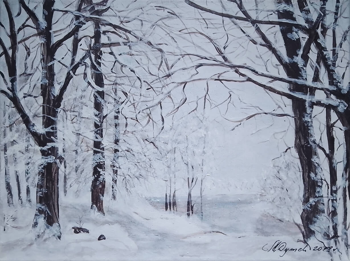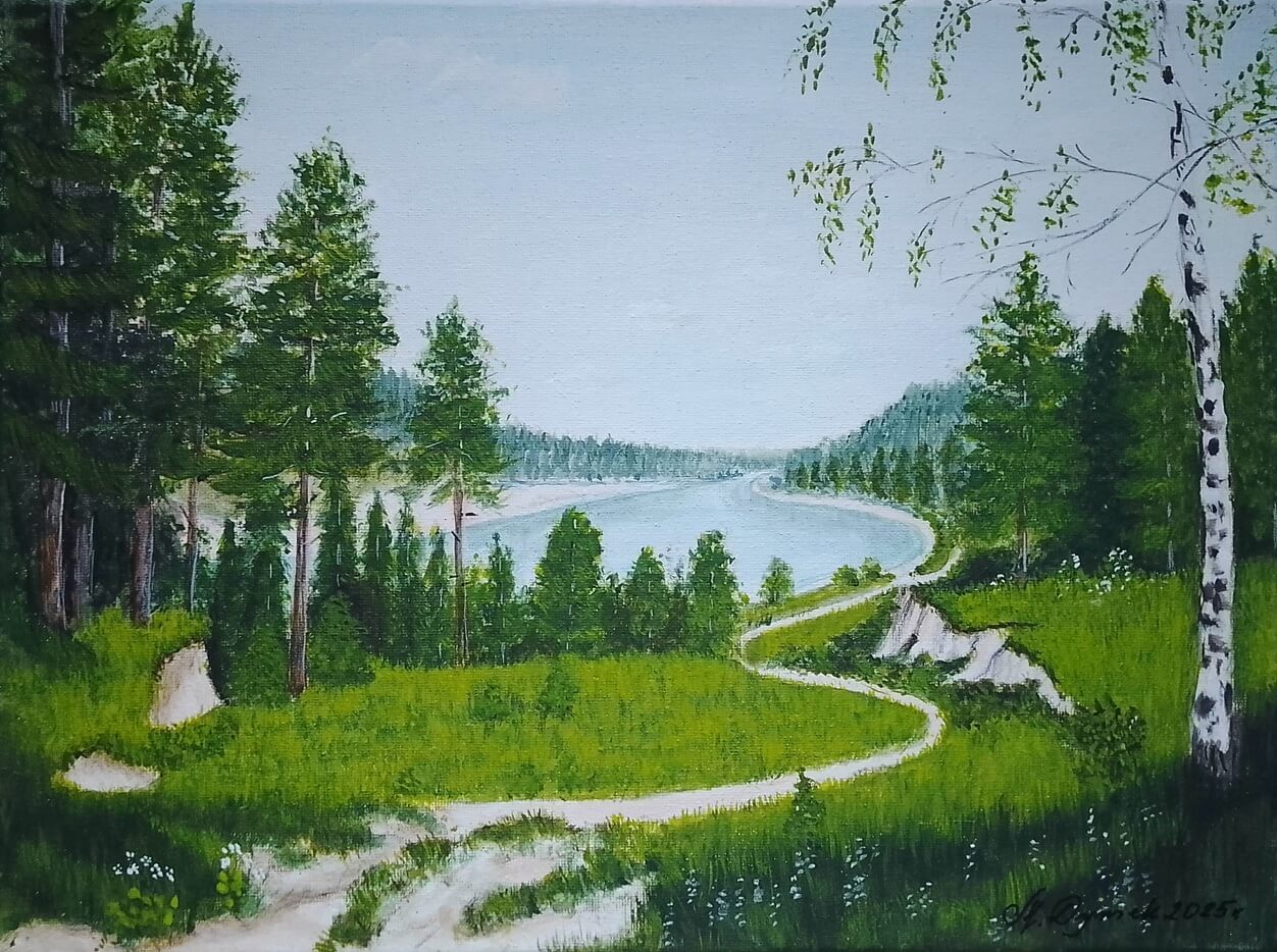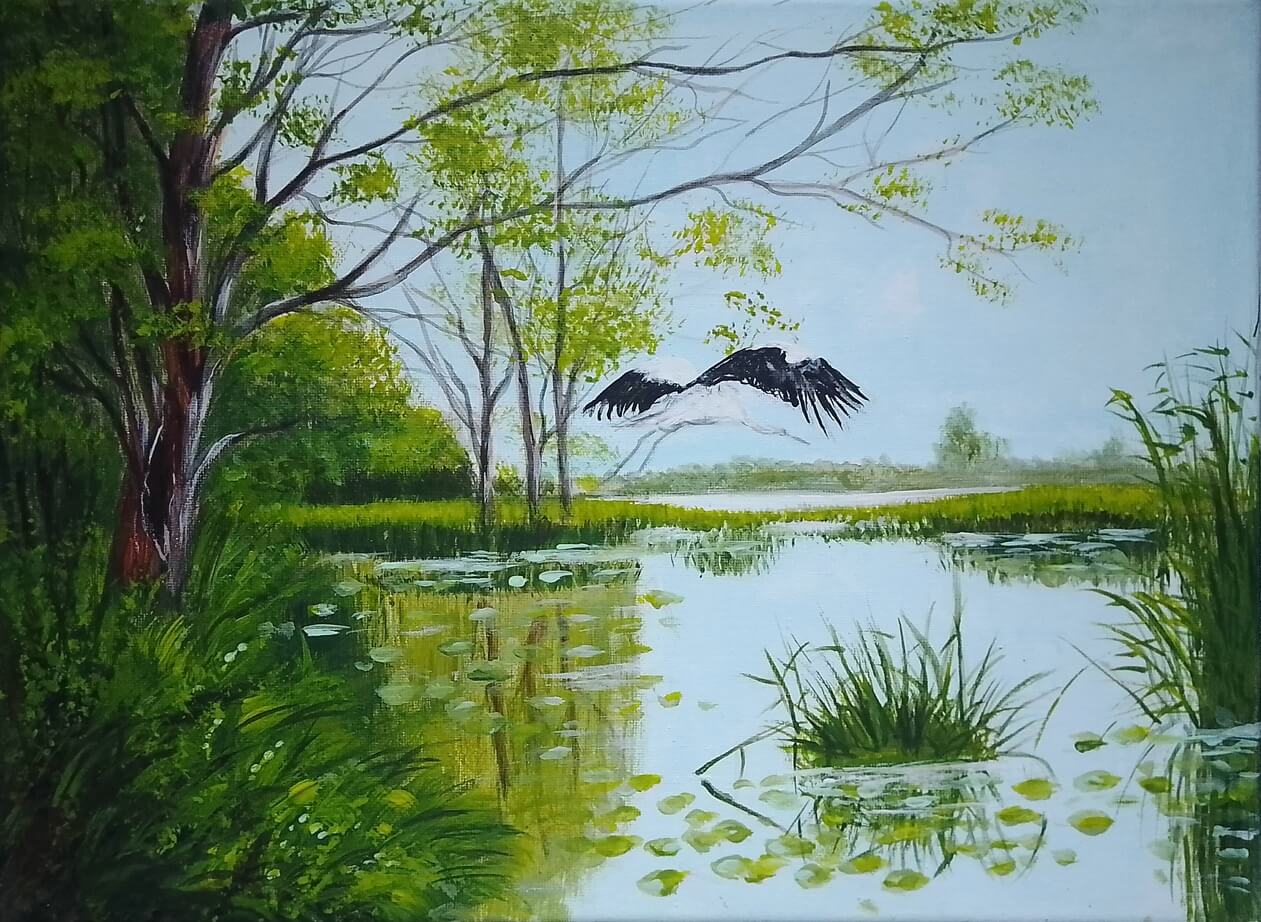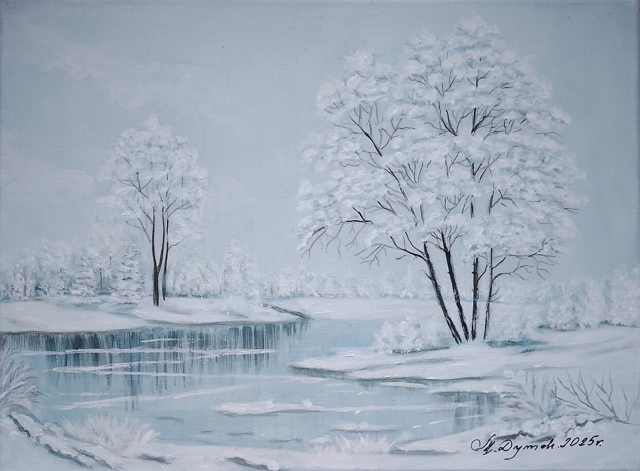 Jeden z kilkudziesięciu ręcznie malowanych obrazów, przedstawiających pejzaże, których motywem przewodnim jest piękno lasów, gór, potoków, zmieniająca się roślinność na przestrzeni dni i miesięcy. Krajobrazy tworzą serie kolorystyczne: "wiosna", "lato", "jesień", "zima".