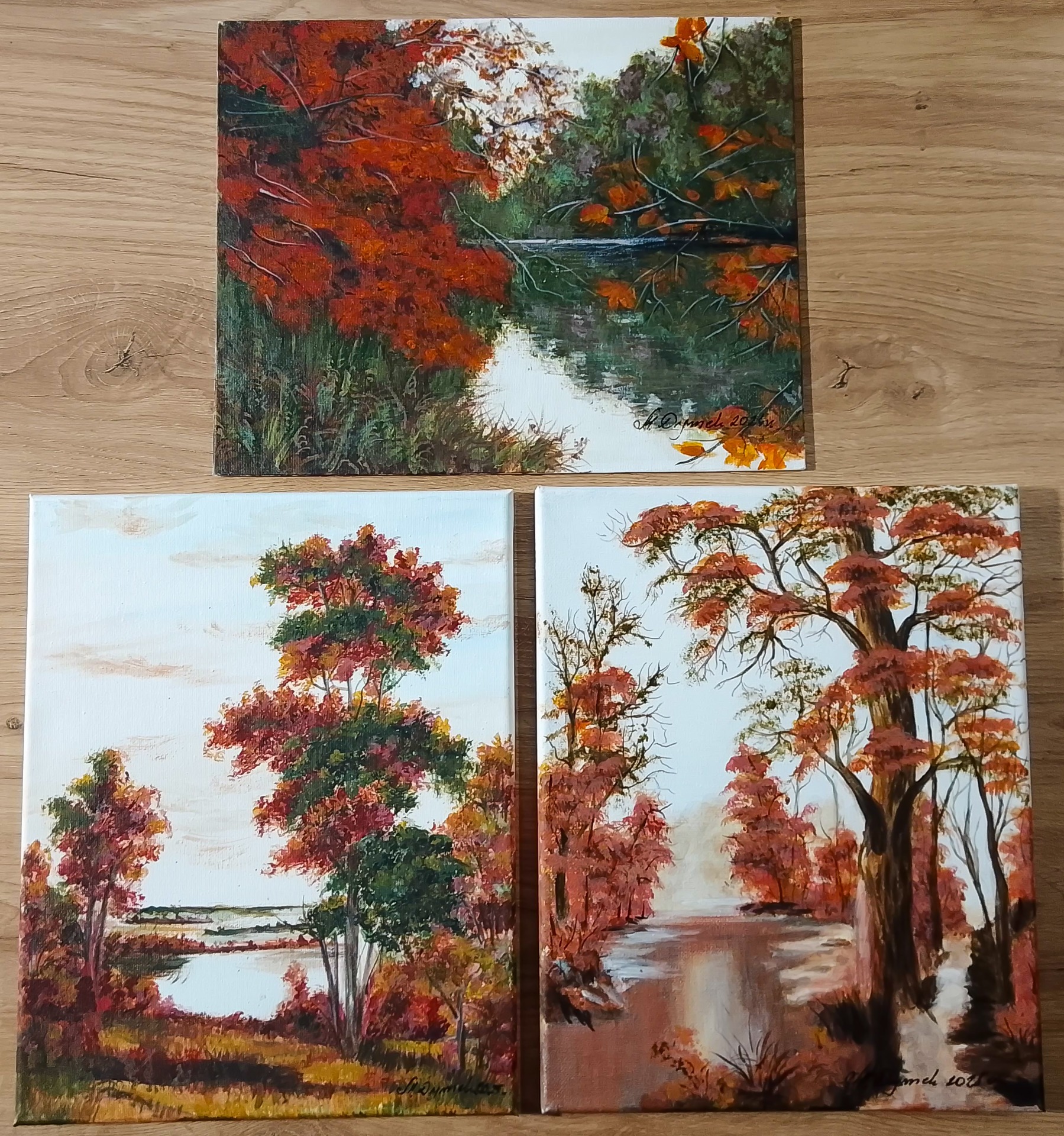 Unikalny zestaw trzech obrazów akrylowych, które wspólnie tworzą harmonijną dekorację ścienną. To intymna podróż w głąb polskiej złotej jesieni. Każde z płócien stanowi osobny rozdział opowieści o przemijaniu i niezwykłym świetle, które towarzyszy tej porze roku.