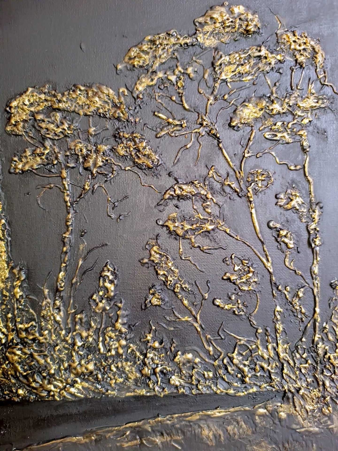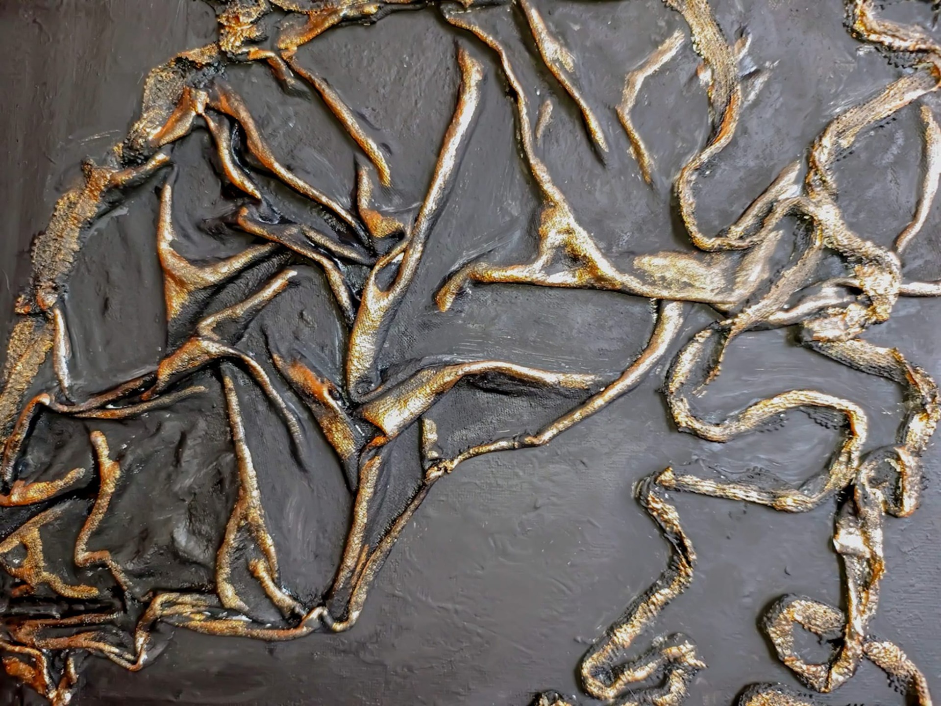 Obrazy powstają na twardych podobraziach (tzw. płótno na dykcie - dotyczy w większości obrazów